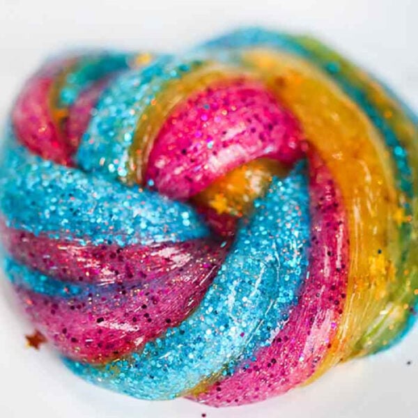 - Next gently wrap the glitter triangle to form your unicorn horn and seal it with glue. We used hot glue for this process. Cut the base to even out the side if needed.